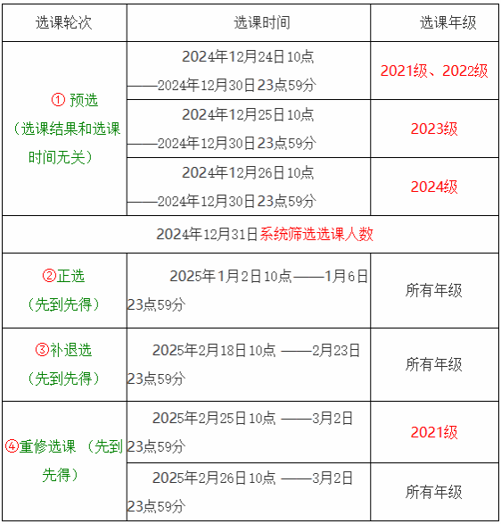 3.补、退选轮次: 2025年2月18日(周二)10点——2月23日23点59分。