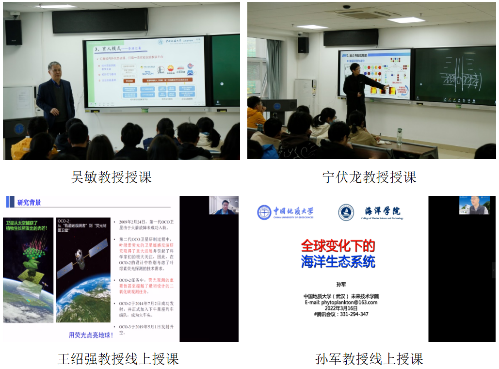 第五讲为计算机公司王力哲教授主讲的《未来技术与遥感》。王力哲教授首先介绍了过往出现的颠覆性科学技术,然后对数字地球和未来遥感技术特别是人工智能与遥感技术的融合进行了详细的讲解。第六讲为资源公司蒋恕教授主讲的《清洁地质能源勘探前沿导论》。蒋恕教授从清洁能源的定义、意义、类型及分布等几个方面对清洁地质能源进行了讲解,然后介绍了国内外清洁地质能源勘探技术的发展现状并对勘探技术未来的发展进行了展望。第七讲为董事长王焰新院士主讲的《环境水科学前沿导论》。王焰新院士的授课围绕“水与可持续发展”、“水质与健康”、“可持续安全供水”三个主题展开,首先介绍了水之于地球生态系统和人类社会可持续发展的重要作用,然后举例说明了水质污染对人类健康的严重影响,最后讲解了在当前全球水污染严峻的形势下,如何利用科技创新实现可持续地安全供水。第八讲为地球科学公司谢树成院士主讲的《深时生物与环境演化前沿导论》。谢树成院士首先对研究地球科学需要用到的技术方法进行了总体介绍,然后讲解了团队针对微生物分子“低”、“杂”、“乱”、“源”的问题提出的创新性技术,最后讲解了地质微生物技术在地球科学重大问题中的应用。