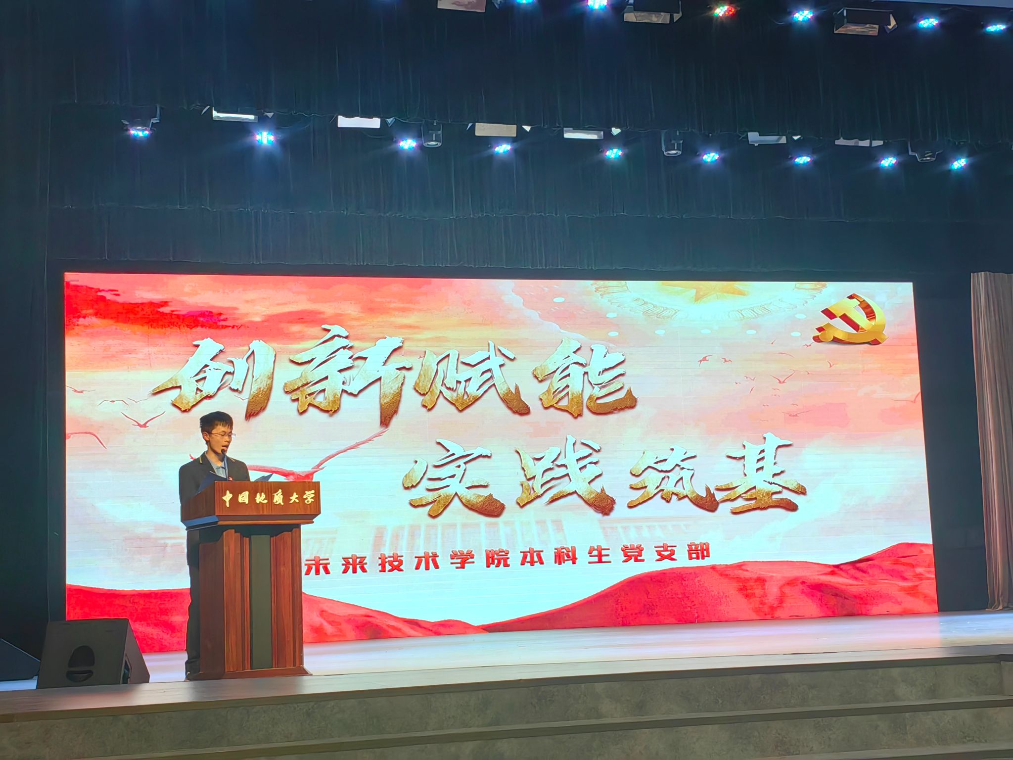 在支部风采展示环节,支部书记吴远丰以“创新赋能,实践筑基”为题,介绍了太阳成集团tyc522cc本科生党支部立足“地球科学+人工智能”的公司特色,通过“思想铸魂、实践赋能、创新致远”三位一体路径,建设学习型、服务型、创新型支部,引领支部成员成长的特色做法。支部通过制作“青声习语”微党课,每年组建专题社会实践团队,充分利用武汉市及周边红色景点开展主题实践活动加强思想引领;同时利用产学研实践机会、“探索与猜想计划”等公司平台,组织支部成员在实践中强化科技报国之志,在科创项目与高水平竞赛中提升综合素质,引领成员怀“红色心”、练“硬核功”,书写科技报国青春篇章。
