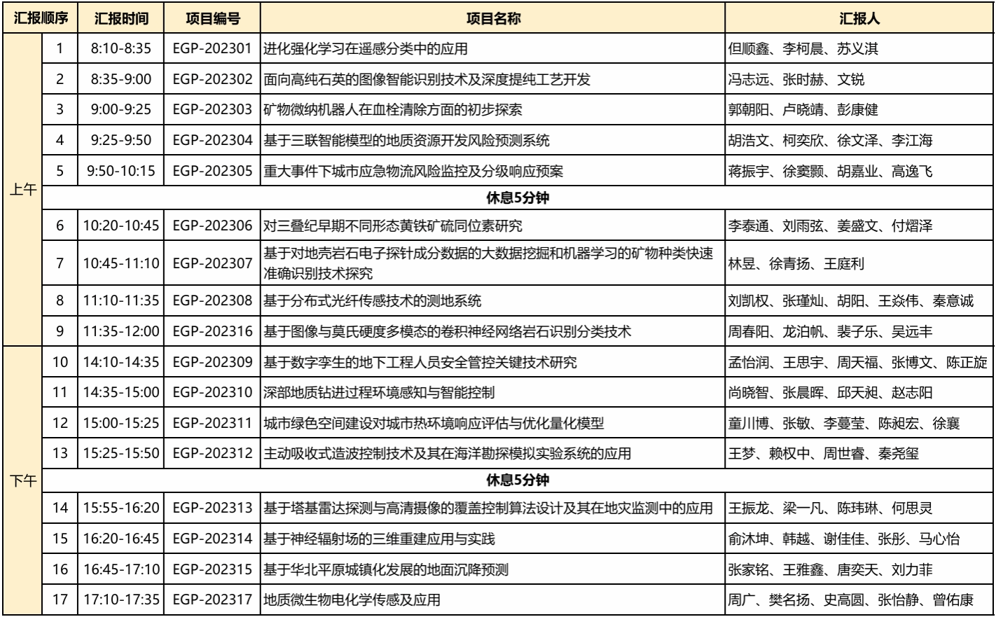 报告安排: