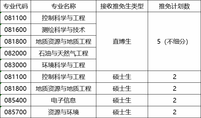 二、接收推免生学科专业及计划