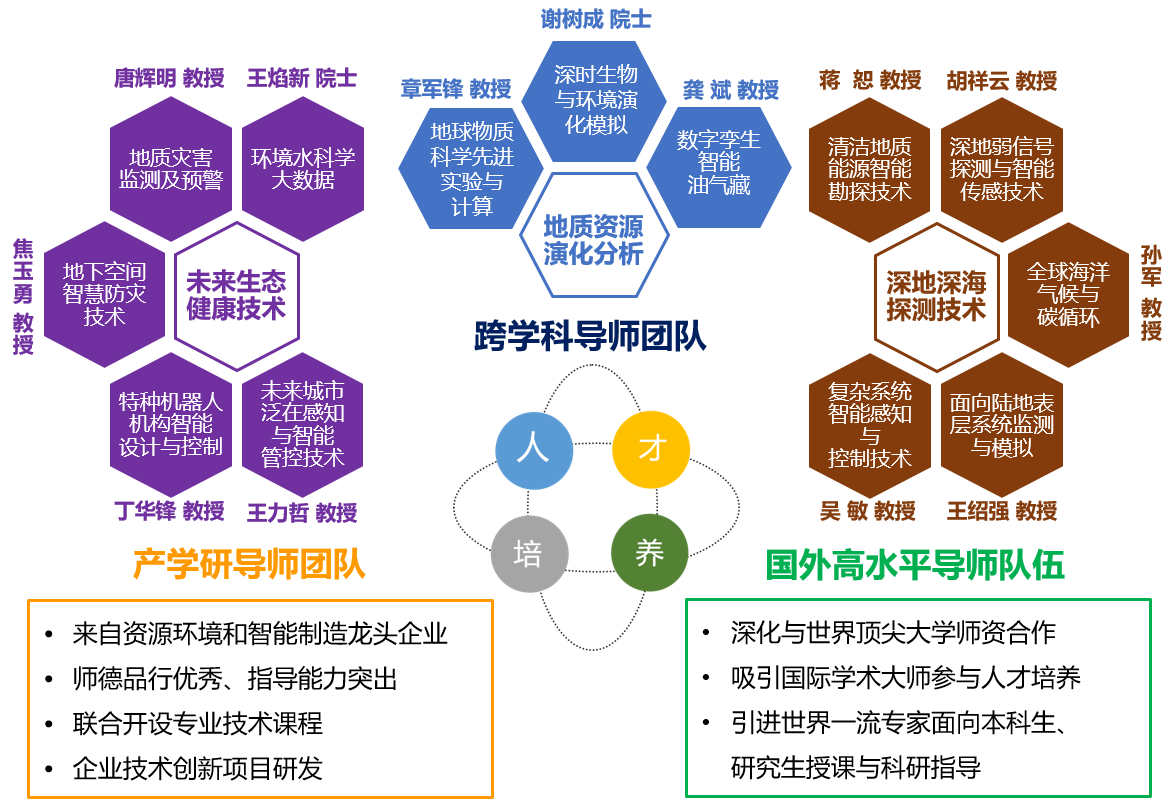 围绕未来地球探测和生态健康技术两大方向,公司聘请殷鸿福、金振民等5位中国科公司院士和2位外籍院士组成顾问团队,聘请王焰新院士、谢树成院士和吴敏教授等16位教授为首席科学家,聘请地质学、地质资源与地质工程、自动化、计算机等领域的高水平团队组成16支导师团队。
